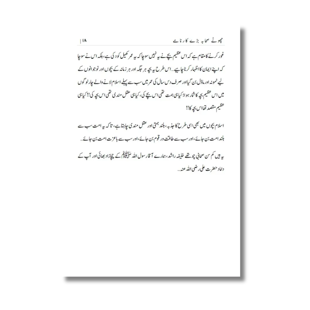 یہ کتاب "چھوٹے صحابہ بڑے کارنامے" بچوں اور نوجوانوں کے لیے ایک شاندار تحفہ ہے، جو صحابہ کرام رضی اللہ عنہم کے اُن عظیم کارناموں اور خدمات کو اجاگر کرتی ہے جو انہوں نے کم عمری میں انجام دیے۔ اس کتاب کے مصنف ڈاکٹر عبد الحمید اطہر ندوی نے دلچسپ اور آسان انداز میں صحابہ کرام کی کہانیاں پیش کی ہیں جو ایمان، جرات، اور اخلاص کا درس دیتی ہیں۔