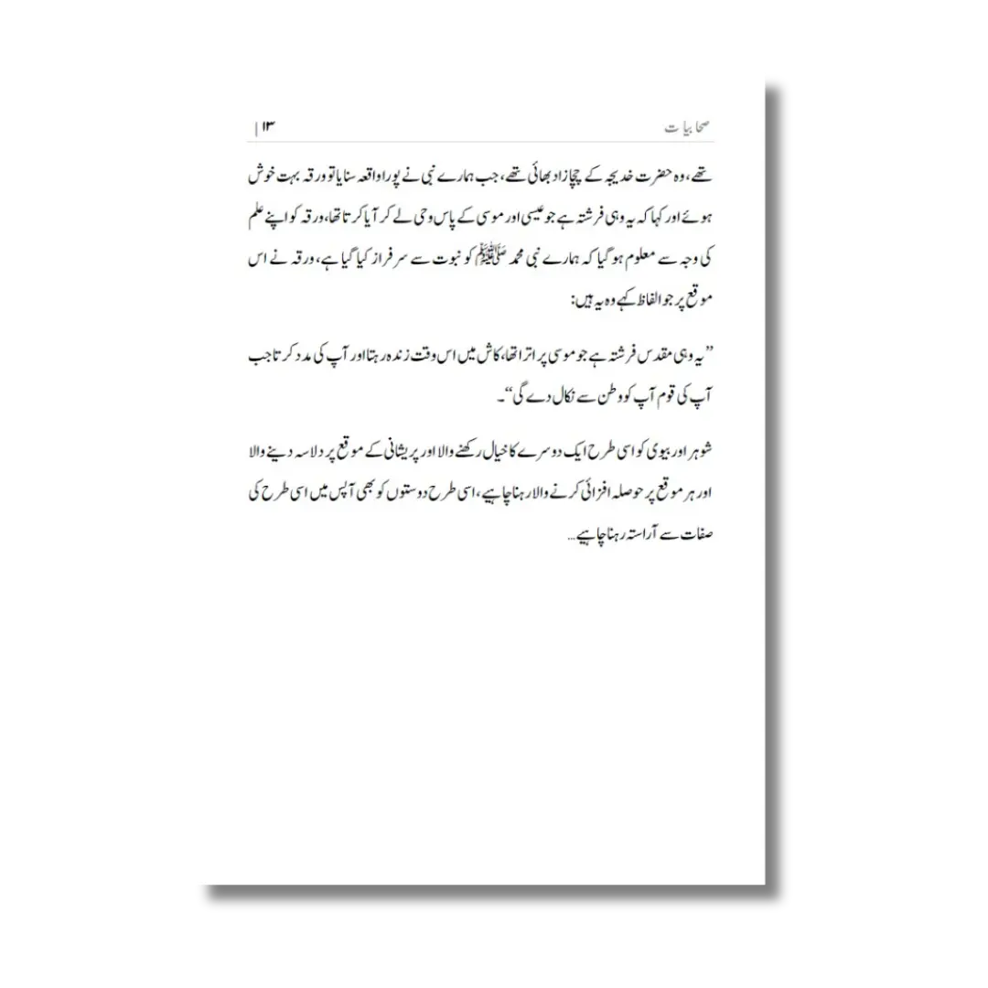 یہ کتاب خواتین کے لیے اس لحاظ سے منفرد ہے کہ اس میں ان خواتین کے کردار، ان کی قربانیاں، ایمان کی پختگی، اور رسول اللہ ﷺ کے ساتھ ان کی محبت کو پیش کیا گیا ہے۔ اس میں زندگی کے ہر شعبے میں ان کے اعلیٰ کردار اور عملی مثالوں کو اجاگر کیا گیا ہے، جو آج کی خواتین کے لیے مشعلِ راہ بن سکتی ہیں۔
