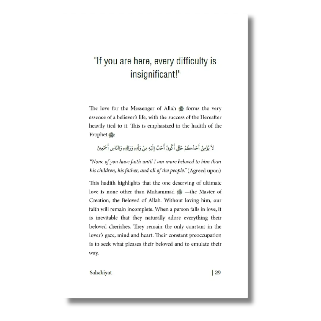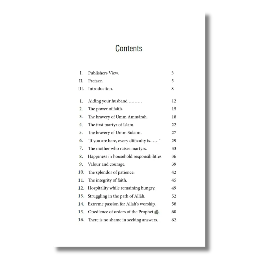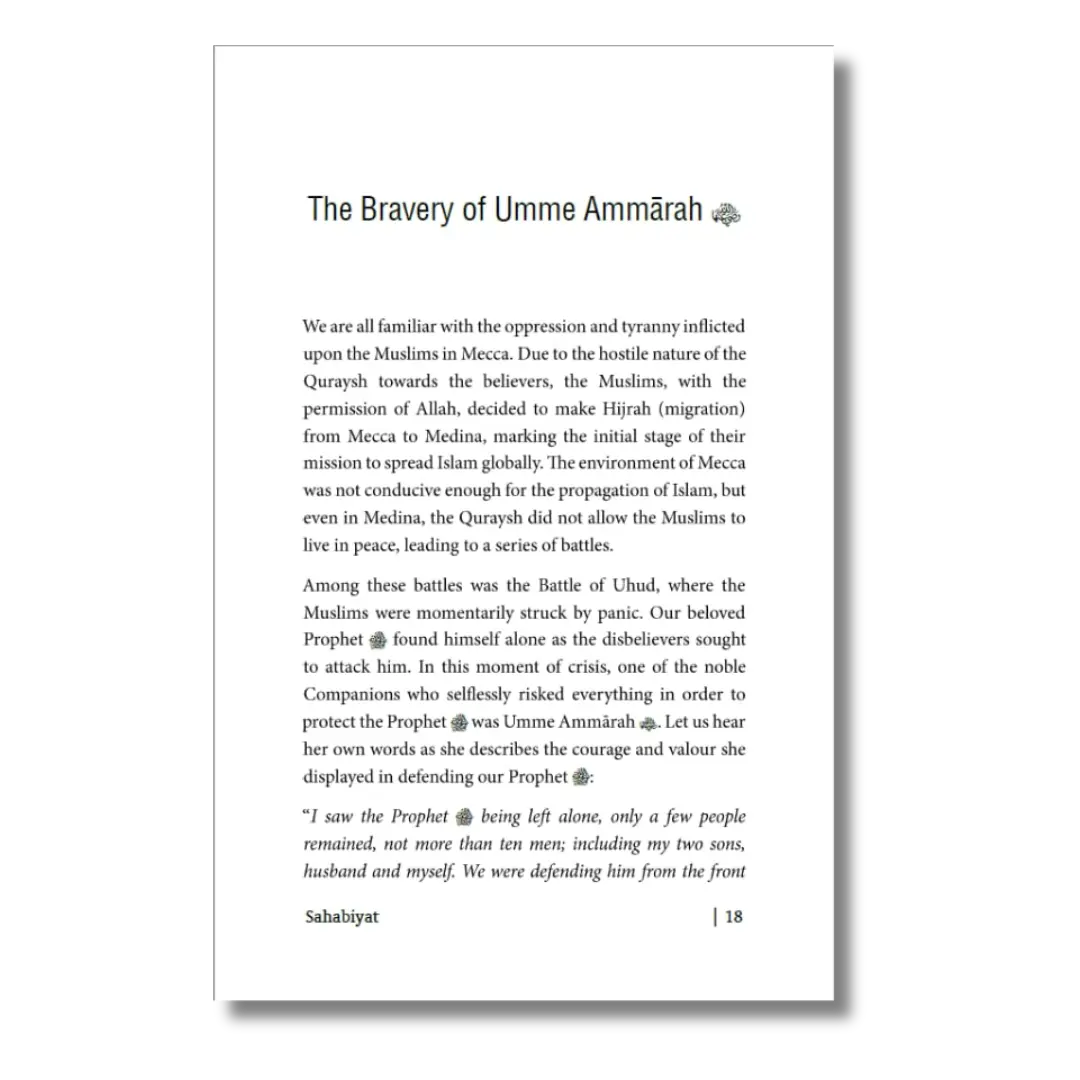 This book revives the inspiring lives of the Sahabiyyat-the noble female Companions of the Prophet g. These remarkable women were scholars, warriors, and leaders, embodying faith, perseverance, and dedication to Islam. Their stories serve as a guiding light, encouraging Muslim women to embrace virtues of modesty, courage, and devotion, shaping both individuals and societies.
