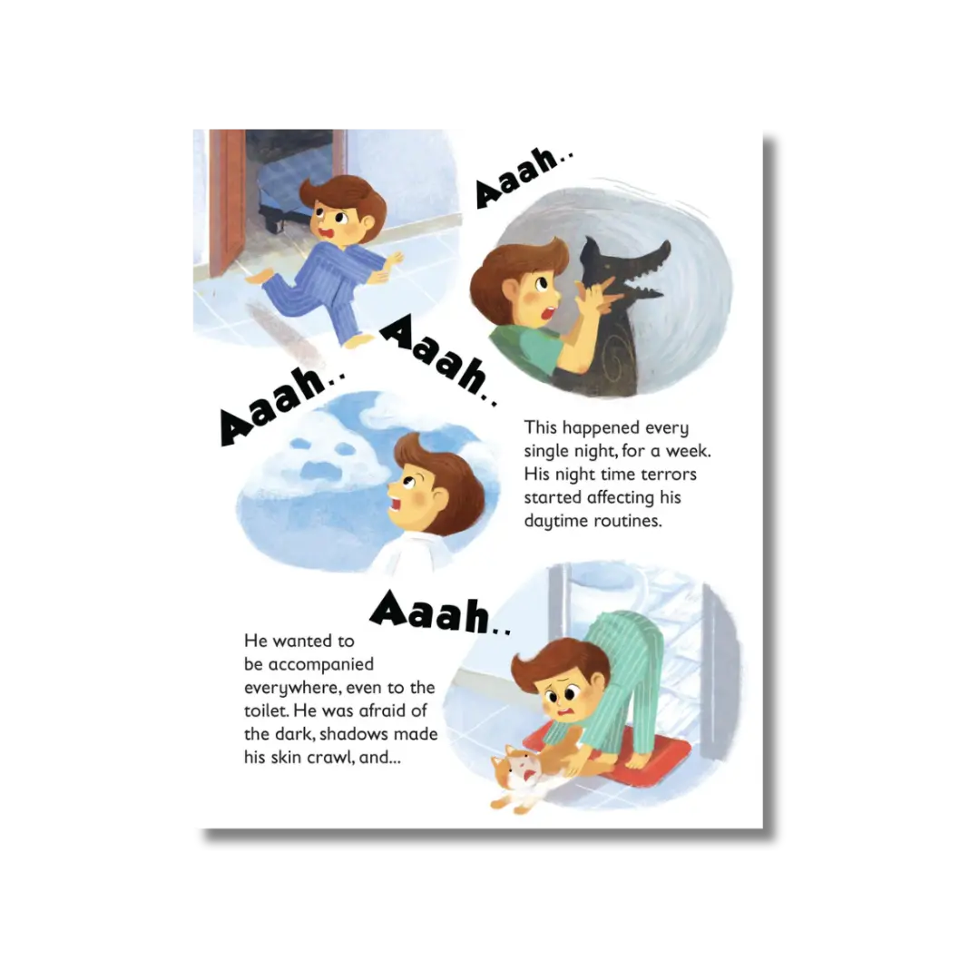 Shadows dancing on the wall, doors creaking down the hall and Ilham simply can’t control his fear at all. His over-active imagination is tough to tame. Every little thing sets him off even in broad daylight, as creepy thoughts keep running into his head.