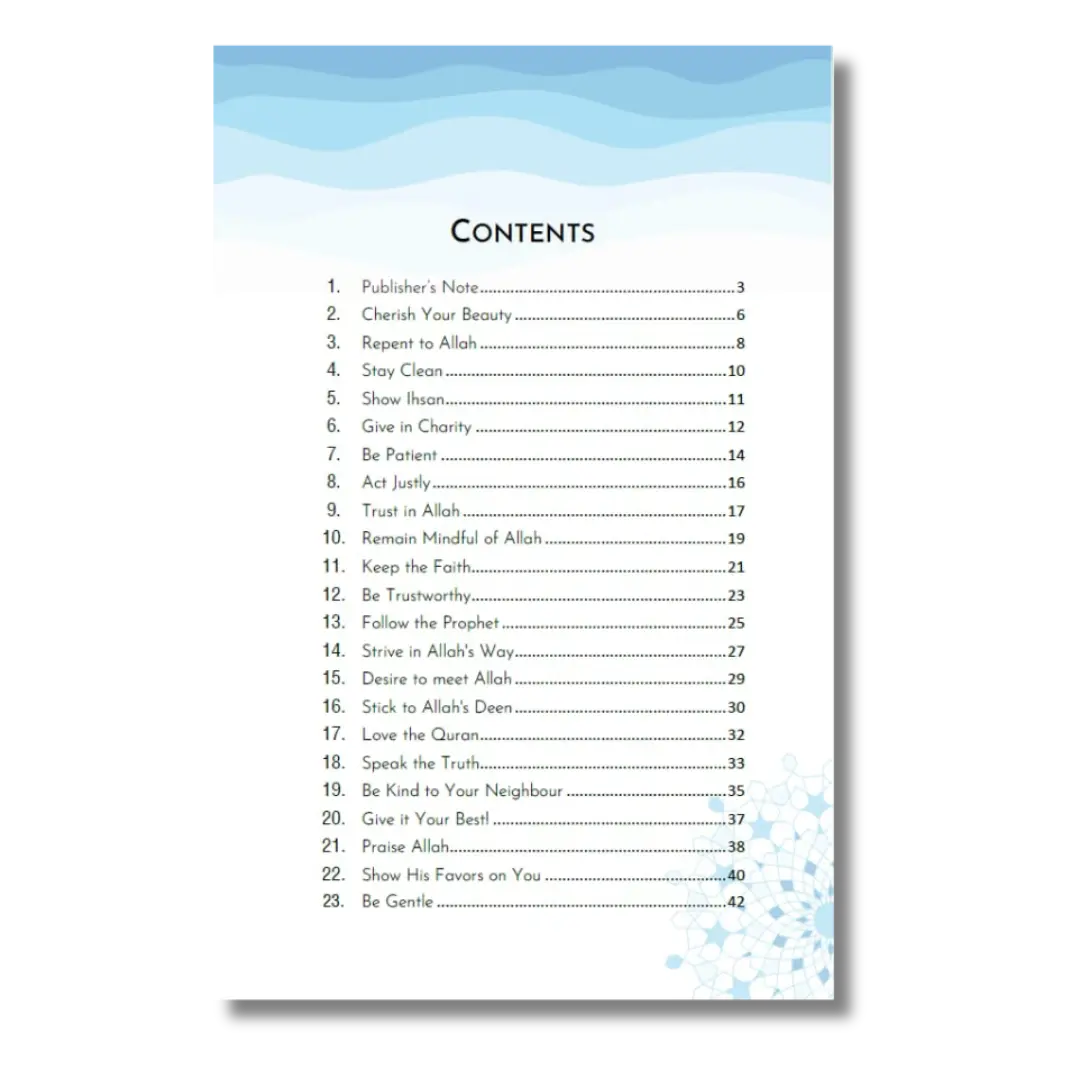 With sincerity and clarity, this book answers the timeless question: What can I do to be loved by Allah? From purifying your intentions and showing patience, to loving for His sake and practicing humility, each chapter is a step toward becoming the kind of servant Allah cherishes.